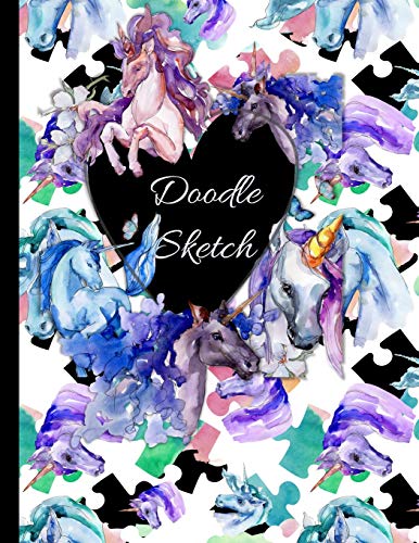 Doodle Sketch: Large Water Color Unicorn Sketch Book Journal for Doodling, Coloring Tons of Creative Fun - Puzzles full version