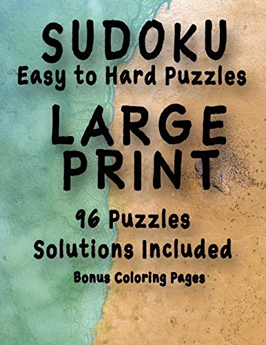 Sudoku Easy to Hard Puzzles LARGE PRINT 96 Puzzles Solutions Included Bonus Coloring Pages: One Puzzle Per Page, Easy to Read Large Numbers, Room For Notes, Great For Adults, Kids and Seniors full version