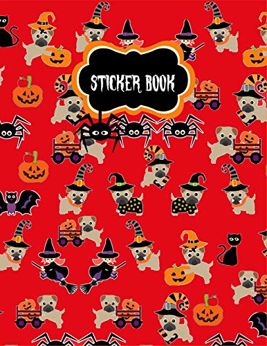 Sticker Book: Cute Pug Dog Halloween Sticker Book for Children Creativity Journal Permanent Sticker Book, Large Diary full version