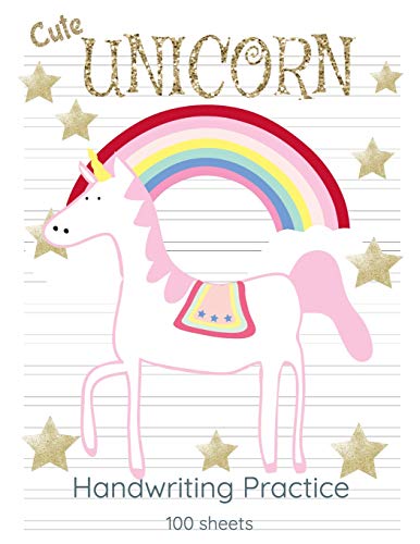 Cute Unicorn Handwriting Practice: Mid Lined Handwriting Blank Workbook 8.5x11 Workbook 8.5x11 Unicorn Under Rainbow full version