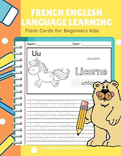 French English Language Learning Flash Cards for Beginners Kids: Easy and fun practice reading, tracing, coloring and writing basic vocabulary words bilingual workbook for children. full version