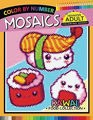 Kawaii Food Hexagon Mosaics Coloring Books: Pixel Color by Number for Adults Stress Relieving Design Puzzle Quest full version