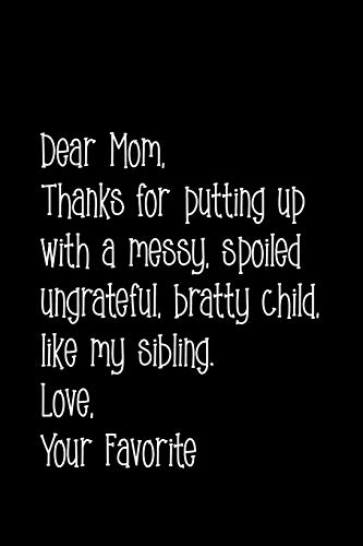 You are about to access our book library "Dear Mom, thanks for putting up with a messy, spoiled ungrateful, bratty child, like my sibling. Love Your favorite: Perfect journal for your mom, ... sayings from daughter to mother cover design. full version"