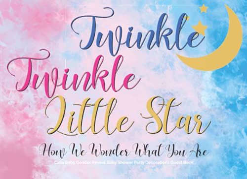 Cute Baby Gender Reveal Baby Shower Party Decorations Guest Book: Twinkle Twinkle Little Star: Gold Glitter Star Moon Pink and Blue Gold Decor Supplies and Accessories full version