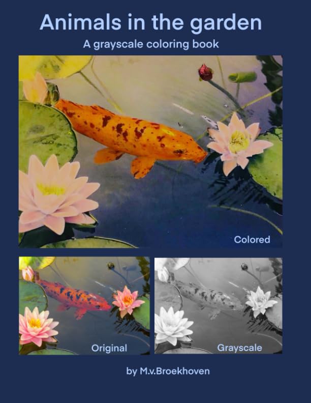 Animals in the garden: A grayscale coloring book full version