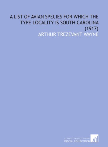 A List of Avian Species for Which the Type Locality is South Carolina (1917) full version