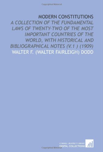 Modern Constitutions: A Collection of the Fundamental Laws of Twenty-Two of the Most Important Countries of the World, With Historical and Bibliographical Notes (V.1 ) (1909) full version