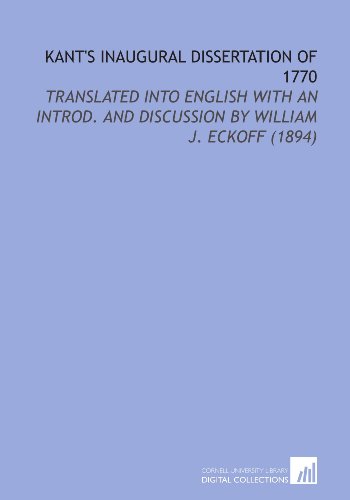 Kant's Inaugural Dissertation of 1770: Translated Into English With an Introd. And Discussion By William J. Eckoff (1894) full version