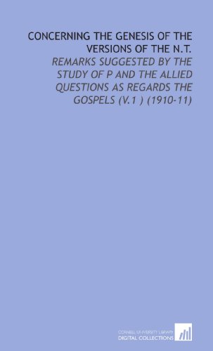 Concerning the Genesis of the Versions of the N.T.: Remarks Suggested By the Study of P and the Allied Questions as Regards the Gospels (V.1 ) (1910-11) full version