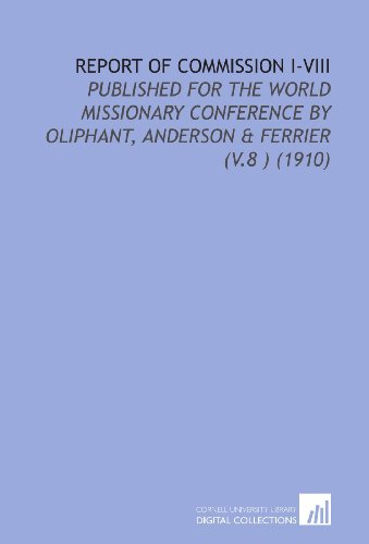 Report of Commission I-VIII: Published for the World Missionary Conference by Oliphant, Anderson & Ferrier (V.8 ) (1910) full version