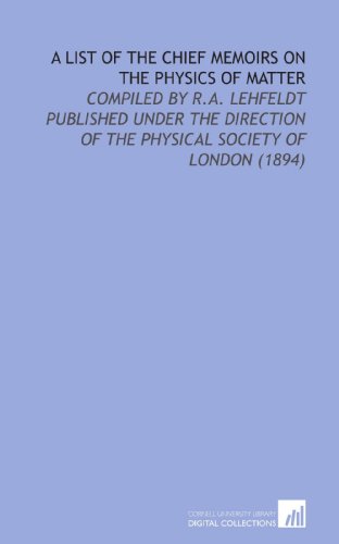 A List of the Chief Memoirs on the Physics of Matter: Compiled By R.a. Lehfeldt Published Under the Direction of the Physical Society of London (1894) full version