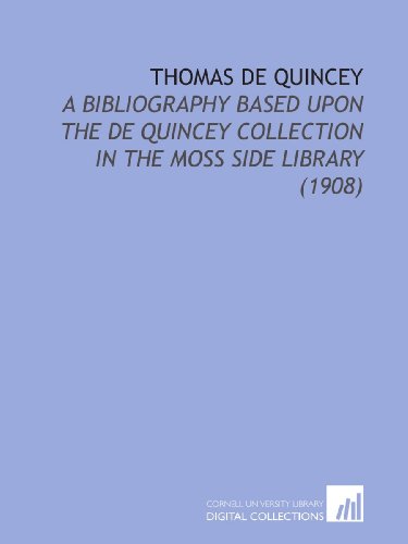 Thomas De Quincey: A Bibliography Based Upon the De Quincey Collection in the Moss Side Library (1908) full version