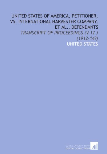 United States of America, petitioner, vs. International Harvester Company, et al., defendants: transcript of proceedings (v.12 ) (1912-14?) full version