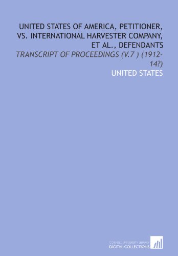 United States of America, petitioner, vs. International Harvester Company, et al., defendants: transcript of proceedings (v.7 ) (1912-14?) full version