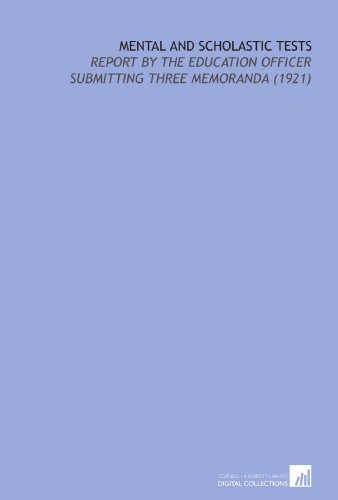 Mental and Scholastic Tests: Report by the Education Officer Submitting Three Memoranda (1921) full version