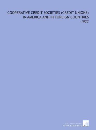 Cooperative Credit Societies (Credit Unions) in America and in Foreign Countries: -1922 full version