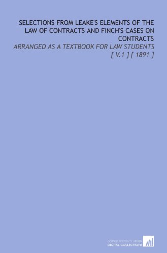 Selections From Leake's Elements of the Law of Contracts and Finch's Cases on Contracts: Arranged as a Textbook for Law Students [ V.1 ] [ 1891 ] full version