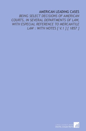 American Leading Cases: Being Select Decisions of American Courts, in Several Departments of Law, With Especial Reference to Mercantile Law : With Notes [ V.1 ] [ 1857 ] full version