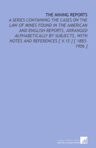 You are about to access our book library "The Mining Reports: A Series Containing the Cases on the Law of Mines Found in the American and English Reports, Arranged Alphabetically by Subjects, With Notes and References [ V.15 ] [ 1883-1906 ] full version"
