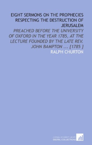 You are about to access our book library "Eight Sermons on the Prophecies Respecting the Destruction of Jerusalem: Preached Before the University of Oxford in the Year 1785, at the Lecture Founded by the Late Rev. John Bampton ... [1785 ] full version"