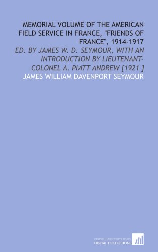 Memorial Volume of the American Field Service in France, "Friends of France", 1914-1917: Ed. By James W. D. Seymour, With an Introduction by Lieutenant-Colonel a. Piatt Andrew [1921 ] full version