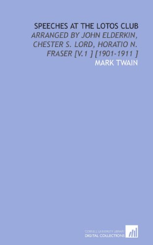 Speeches at the Lotos Club: Arranged by John Elderkin, Chester S. Lord, Horatio N. Fraser [V.1 ] [1901-1911 ] full version