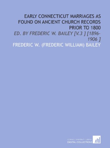 Early Connecticut Marriages as Found on Ancient Church Records Prior to 1800: Ed. By Frederic W. Bailey [V.3 ] [1896-1906 ] full version