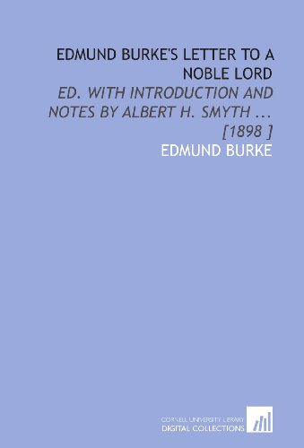 Edmund Burke's Letter to a Noble Lord: Ed. With Introduction and Notes by Albert H. Smyth ... [1898 ] full version