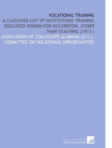 Vocational Training: A Classified List of Institutions Training Educated Women for Occupation, Other Than Teaching (1913 ) full version