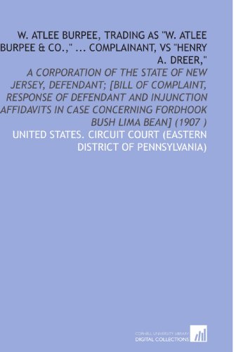 W. Atlee Burpee, Trading As "W. Atlee Burpee & Co.," ... Complainant, Vs "Henry a. Dreer," full version