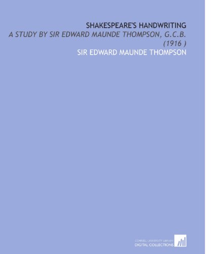 Shakespeare's Handwriting: A Study by Sir Edward Maunde Thompson, G.C.B. (1916 ) full version