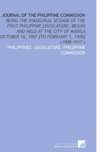 Journal of the Philippine Commission: Being the Inaugural Session of the First Philippine Legislature, Begun and Held at the City of Manila October 16, 1907 [to February 1, 1908] (1908-1917 ) full version