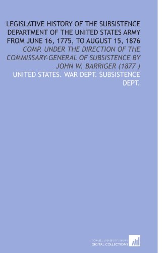 Legislative History of the Subsistence Department of the United States Army From June 16, 1775, to August 15, 1876 full version