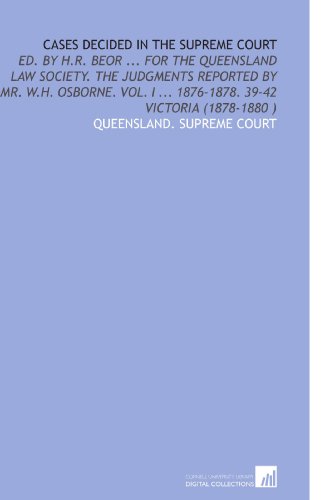 Cases Decided in the Supreme Court: Ed. By H.R. Beor ... For the Queensland Law Society. The Judgments Reported by Mr. W.H. Osborne. Vol. I ... 1876-1878. 39-42 Victoria (1878-1880 ) full version