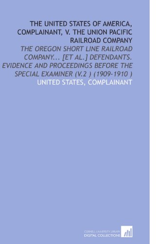 The United States of America, Complainant, V. The Union Pacific Railroad Company: The Oregon Short Line Railroad Company... [Et Al.] Defendants. ... the Special Examiner (V.2 ) (1909-1910 ) full version
