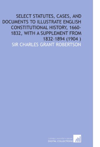 Select Statutes, Cases, and Documents to Illustrate English Constitutional History, 1660-1832, With a Supplement From 1832-1894 (1904 ) full version