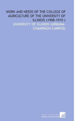 Work and Needs of the College of Agriculture of the University of Illinois (1908-1910 ) full version