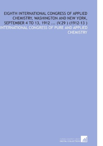 Eighth International Congress of Applied Chemistry, Washington and New York, September 4 to 13, 1912 ... (V.29 ) (1912-13 ) full version