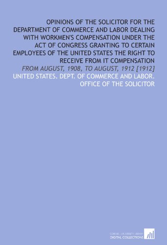You are about to access our book library "Opinions of the Solicitor for the Department of commerce and labor dealing with workmen's compensation under the act of Congress granting to certain ... From August, 1908, to August, 1912 [1912] full version"