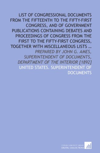 You are about to access our book library "List of congressional documents from the Fifteenth to the Fifty-first Congress, and of government publications containing debates and proceedings of ... documents, Department of the interior [1892] full version"