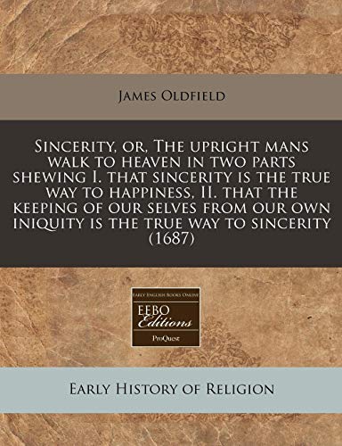 You are about to access our book library "Sincerity, or, The upright mans walk to heaven in two parts shewing I. that sincerity is the true way to happiness, II. that the keeping of our selves ... iniquity is the true way to sincerity (1687) full version"
