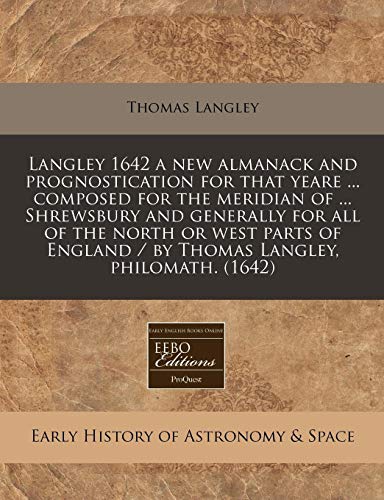 Langley 1642 a new almanack and prognostication for that yeare ... composed for the meridian of ... Shrewsbury and generally for all of the north or ... / by Thomas Langley, philomath. (1642) full version
