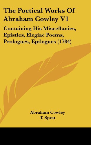 The Poetical Works Of Abraham Cowley V1: Containing His Miscellanies, Epistles, Elegiac Poems, Prologues, Epilogues (1784) full version