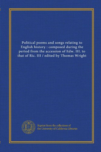 Political poems and songs relating to English history : composed during the period from the accession of Edw. III. to that of Ric. III / edited by Thomas Wright full version