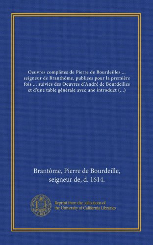 You are about to access our book library "Oeuvres complètes de Pierre de Bourdeilles ... seigneur de Branthôme, publiées pour la première fois ... suivies des Oeuvres d'André de Bourdeilles et ... ... et M. Louis Lacour (French Edition) full version"