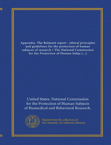 Appendix, The Belmont report : ethical principles and guidelines for the protection of human subjects of research / The National Commission for the ... of Biomedical and Behavioral Research full version