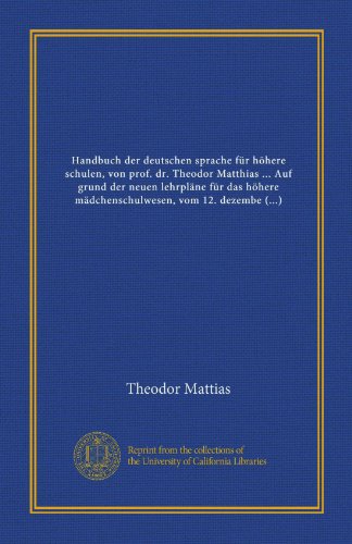 You are about to access our book library "Handbuch der deutschen sprache für höhere schulen, von prof. dr. Theodor Matthias ... Auf grund der neuen lehrpläne für das höhere mädchenschulwesen, ... bearb. von dr. R. Le Mang (German Edition) full version"