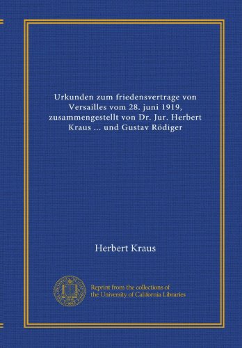 Urkunden zum friedensvertrage von Versailles vom 28. juni 1919, zusammengestellt von Dr. Jur. Herbert Kraus ... und Gustav Rödiger (German Edition) full version