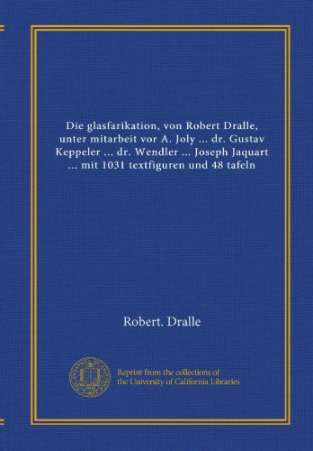 Die glasfarikation, von Robert Dralle, unter mitarbeit vor A. Joly ... dr. Gustav Keppeler ... dr. Wendler ... Joseph Jaquart ... mit 1031 textfiguren und 48 tafeln (German Edition) full version