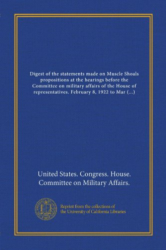 Digest of the statements made on Muscle Shoals propositions at the hearings before the Committee on military affairs of the House of representatives. February 8, 1922 to March 13, 1922 full version